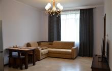 Просторная и стильная квартира в Красной Поляне с ремонтом и мебелью. Кухня с гостиной, выделенная спальня. Мебель на заказ, отделка натуральным деревом.